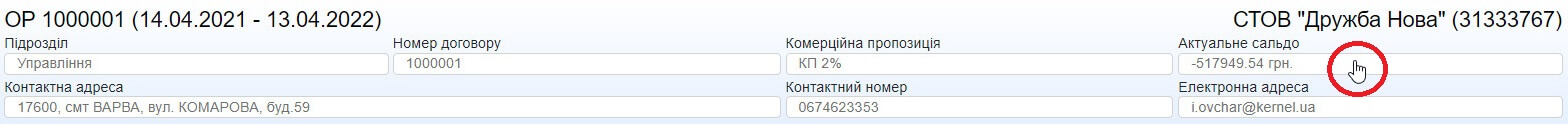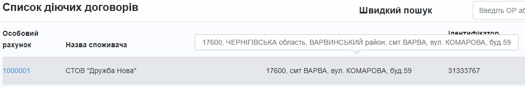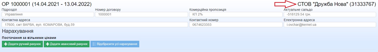 Якщо точка вже відноситься до певного договору, це буде вказано червоним шрифтом в кінці інформації про ТО (приклад на скріншоті нижче).