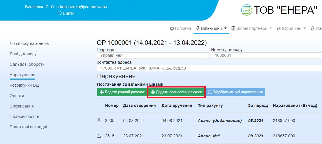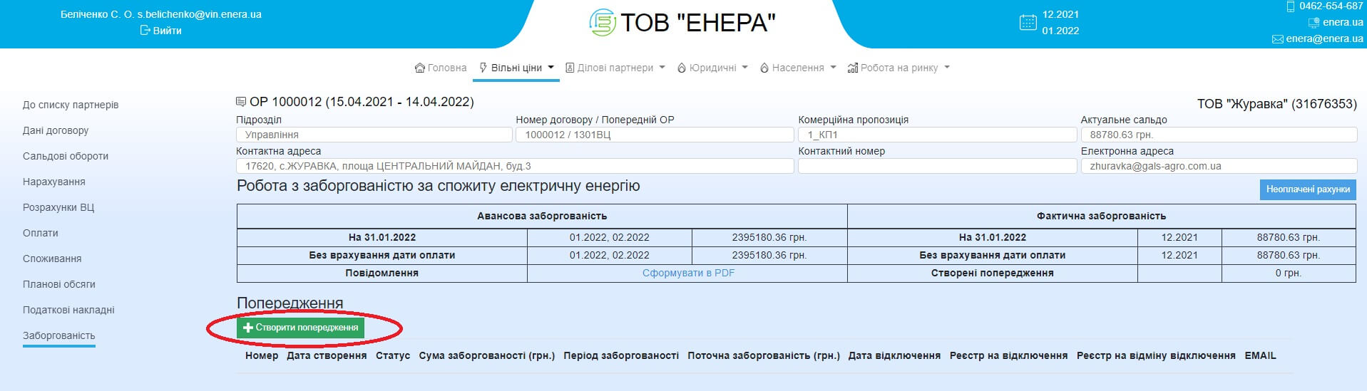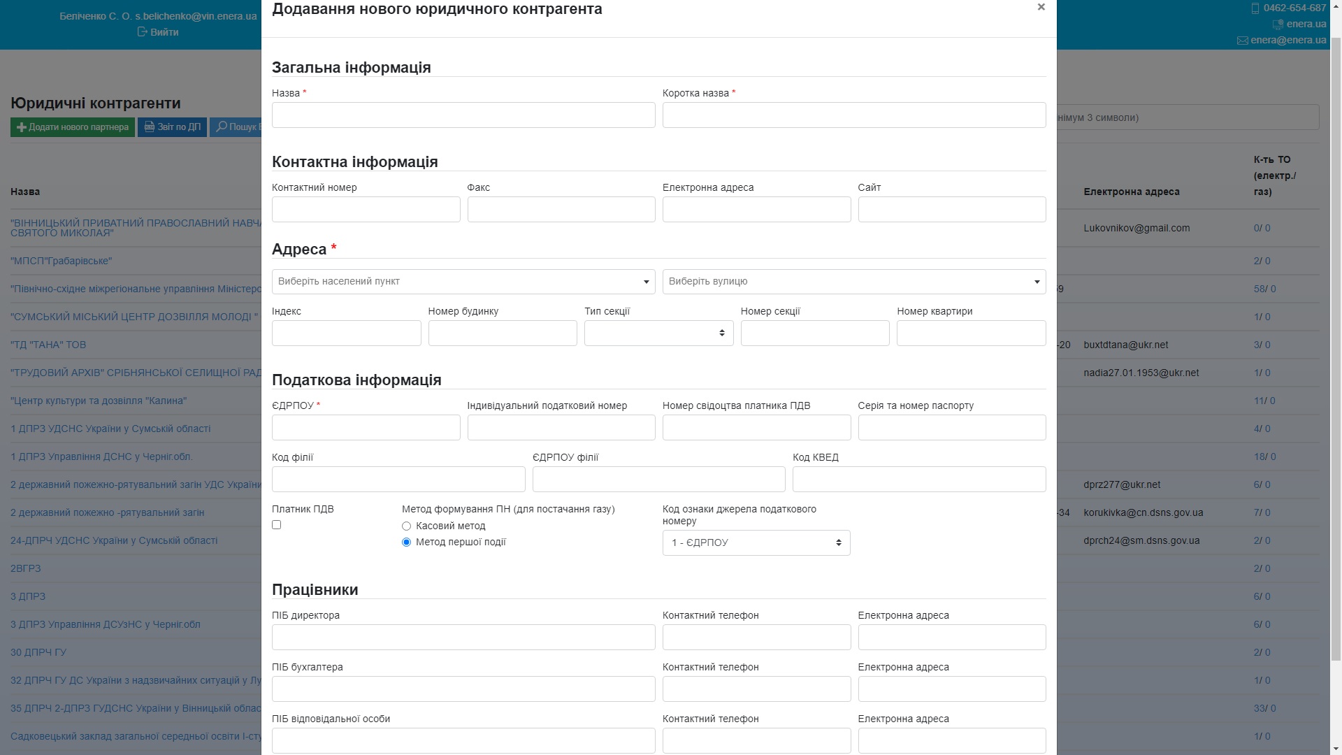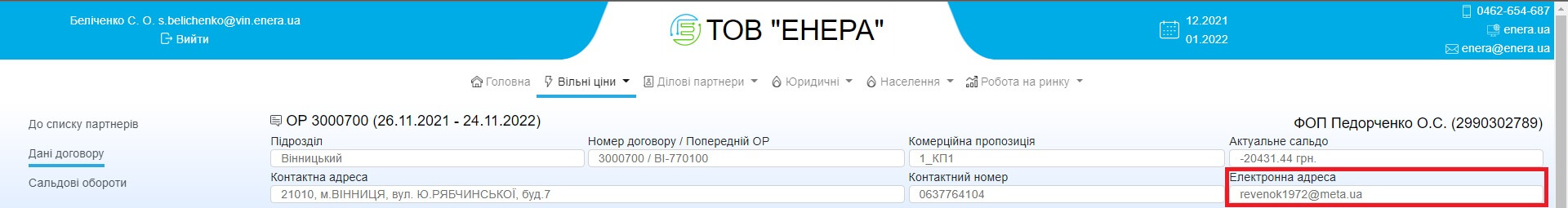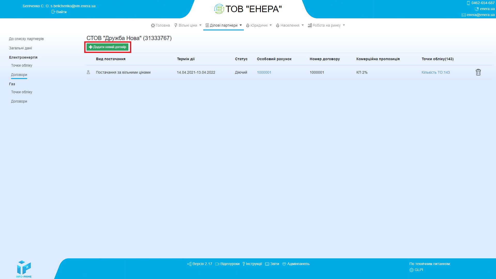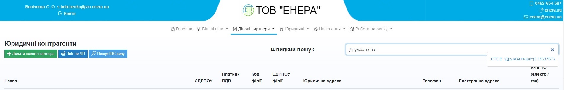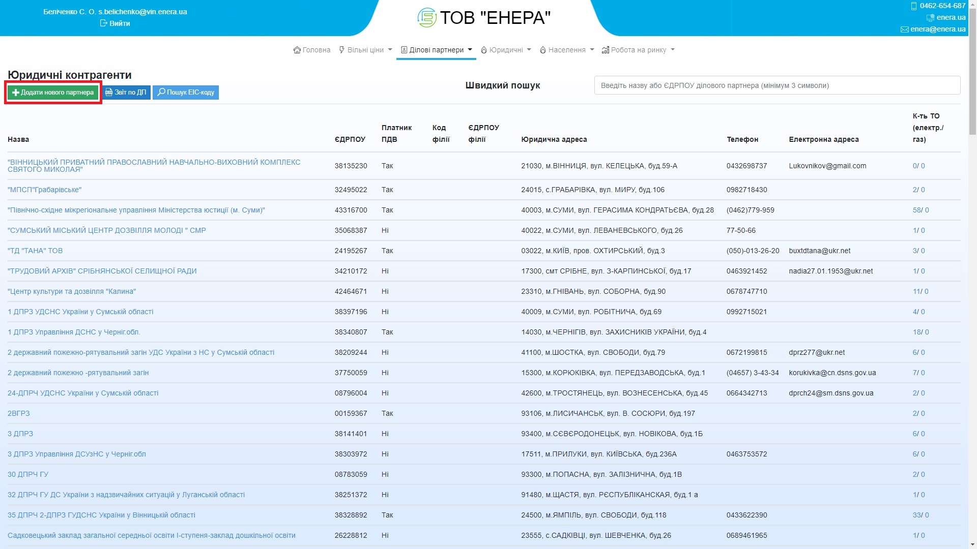 1) Перейти у розділ "ділові партнери" в головному меню (побутові або юридичні)