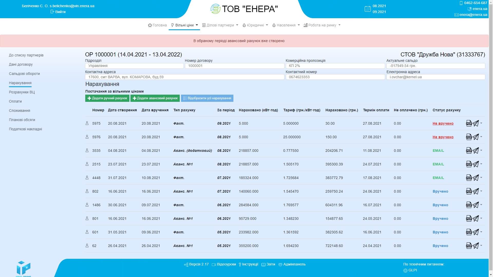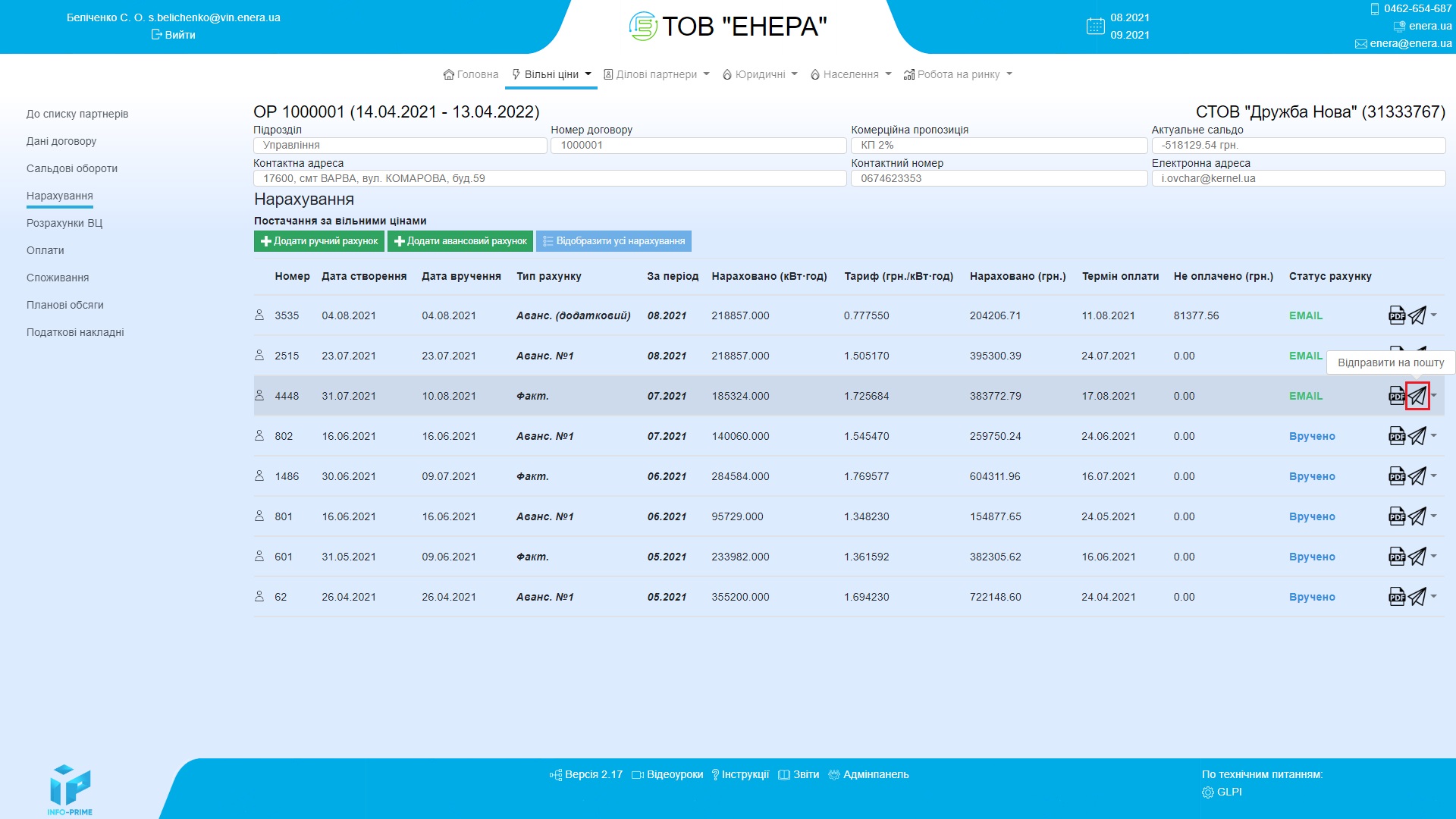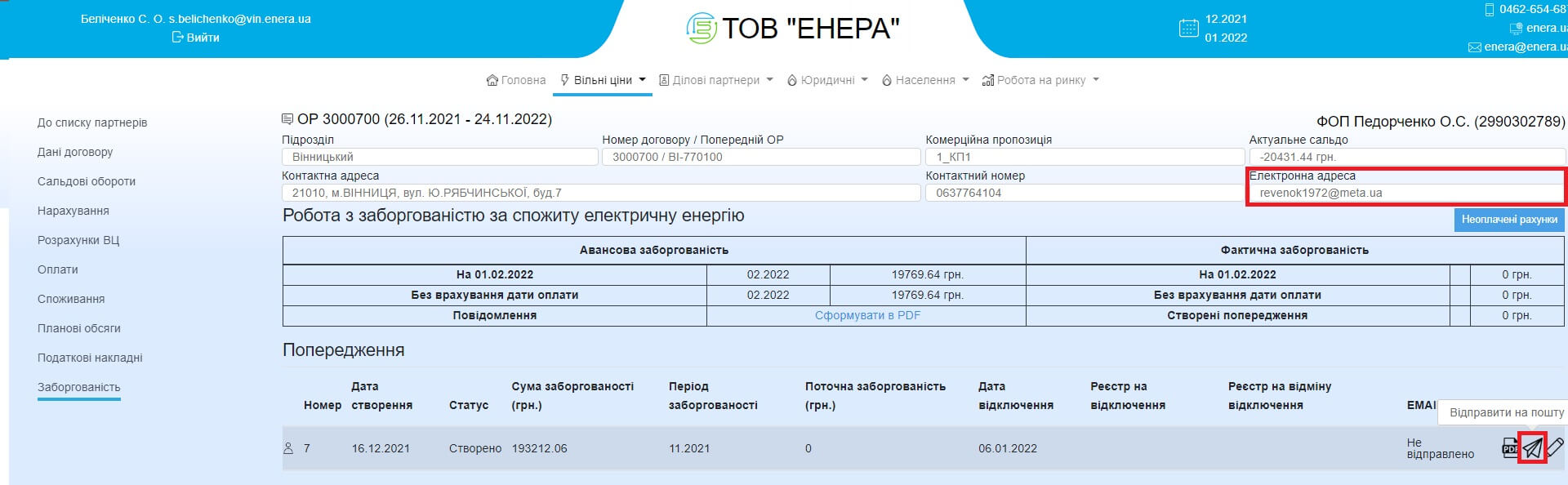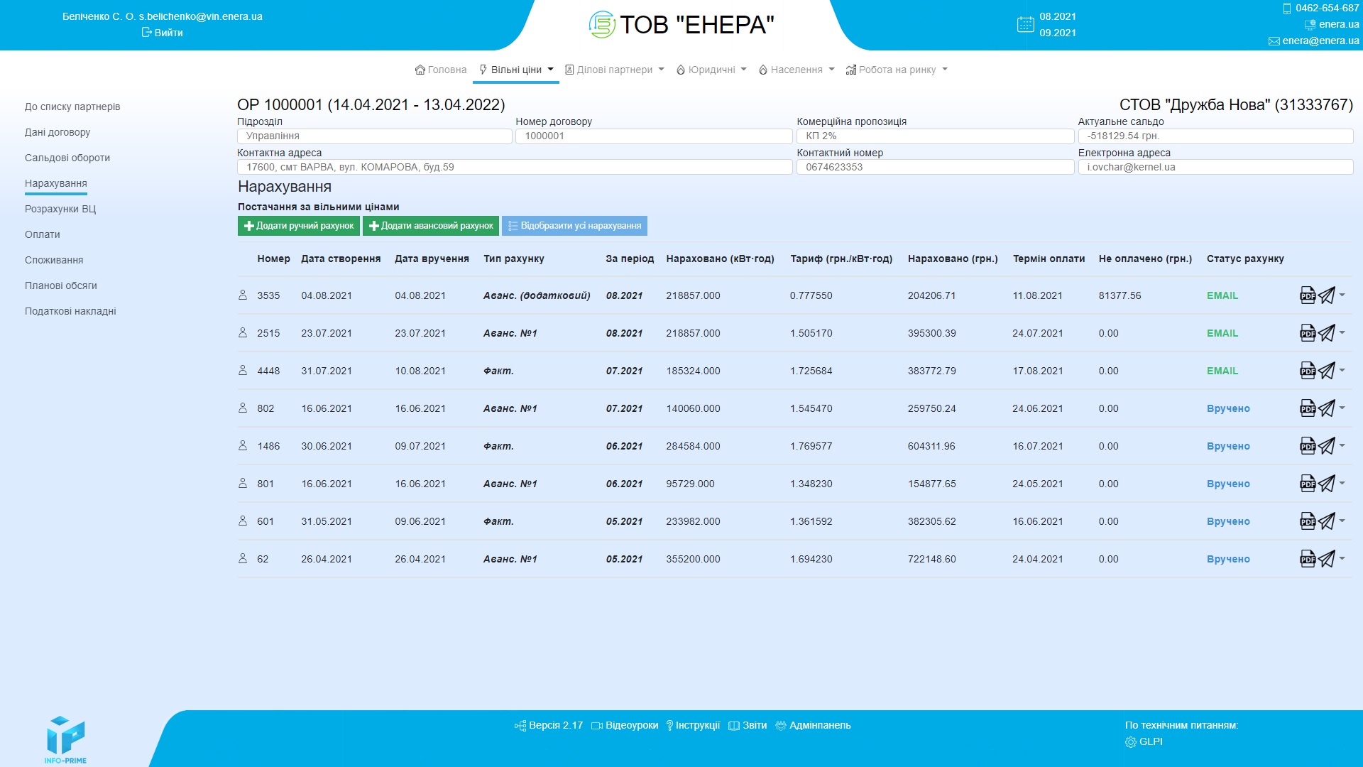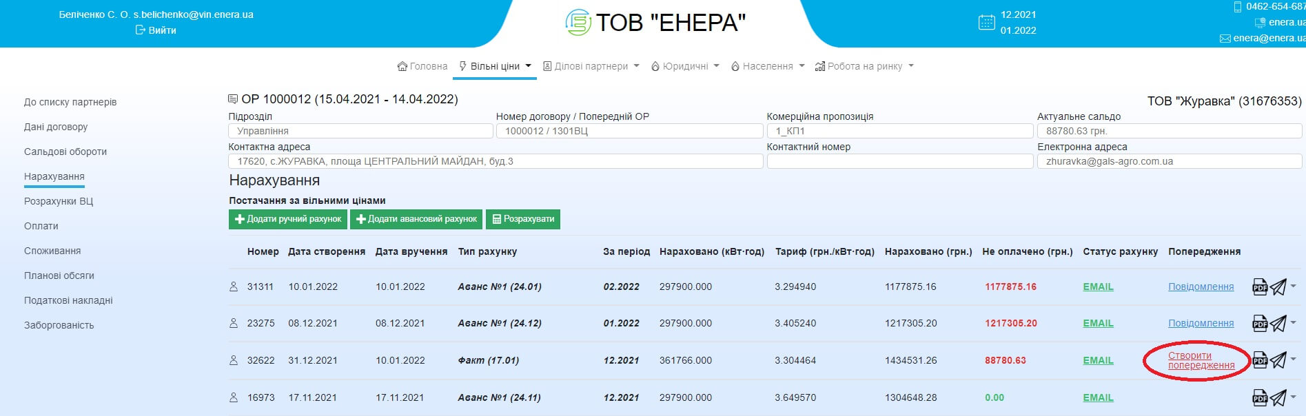 1) Перейти у розділ "ділові партнери" в головному меню (побутові або юридичні)