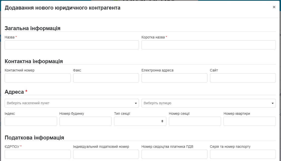 3) Після натискання Вам відкриється вікно, в якому є всі необхідні для додавання партнера поля.