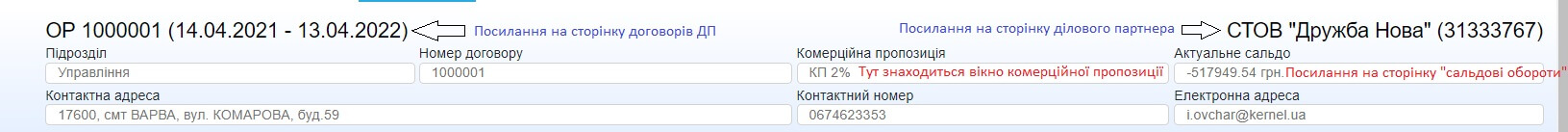 9) Доречі про картку договору, блок над таблицями містить декілька корисних посилань та підказок: