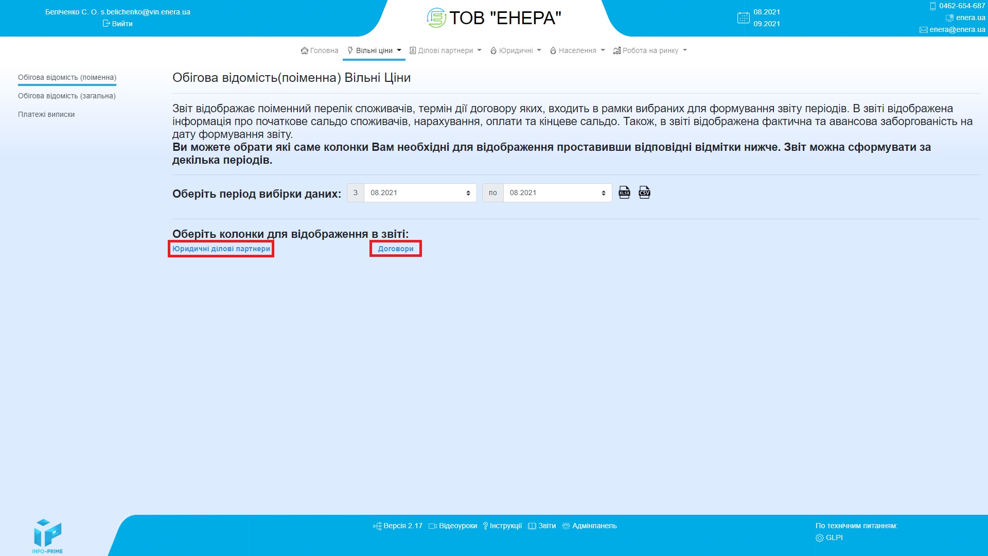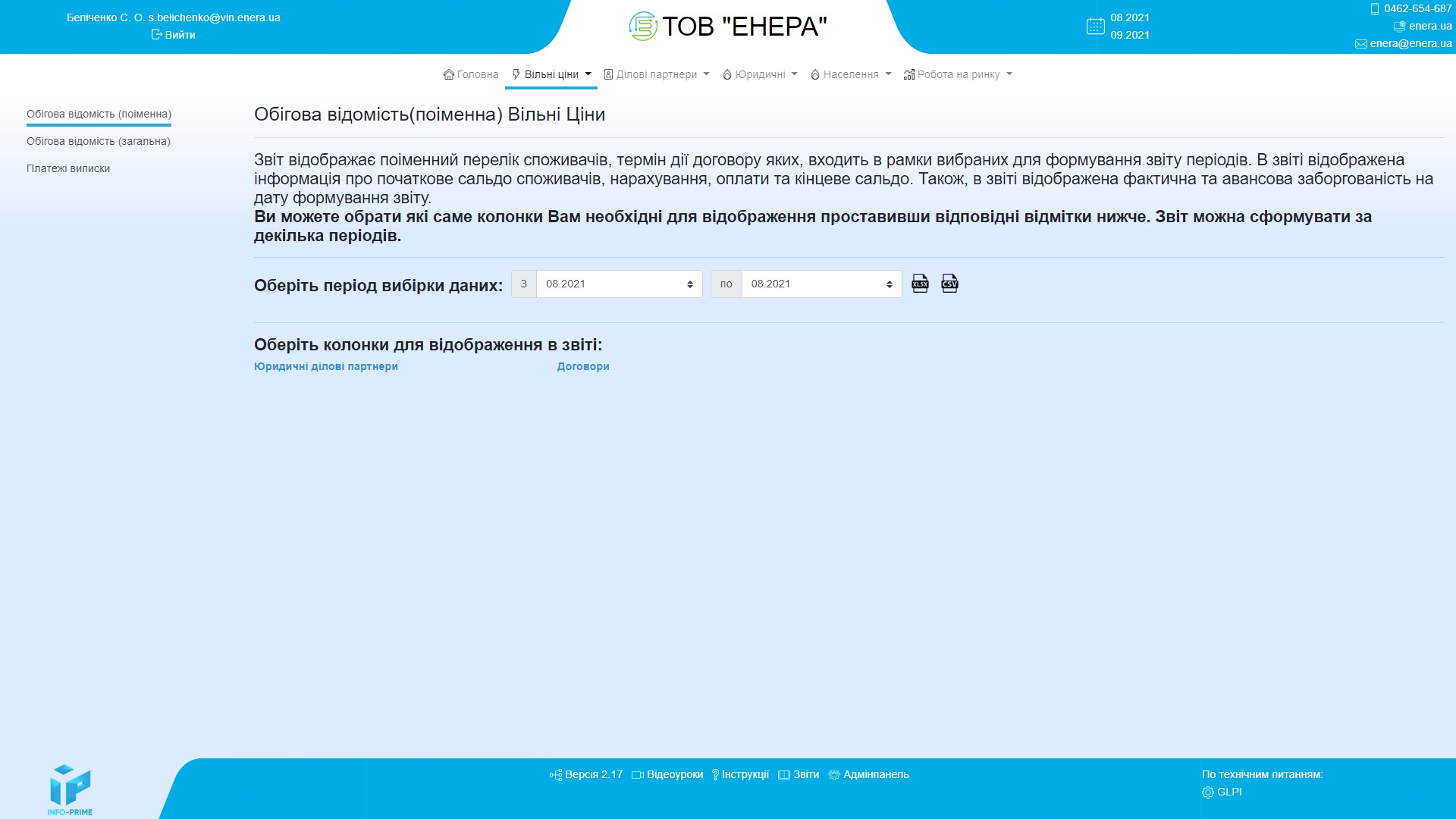 Для того, щоб сформувати потрібний звіт, потрібно в меню обрати пункт "Вільні ціни -> Звіти", після чого завантажиться наступна сторінка:
