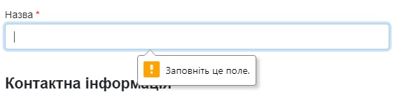 Поля, які обов'язково потрібно заповнити, виділені червоними зірочками *. Також ці поля покажуть відповідне попередження (приклад на скріншоті нижче), якщо вони були не заповнені і при цьому була спроба додати партнера.