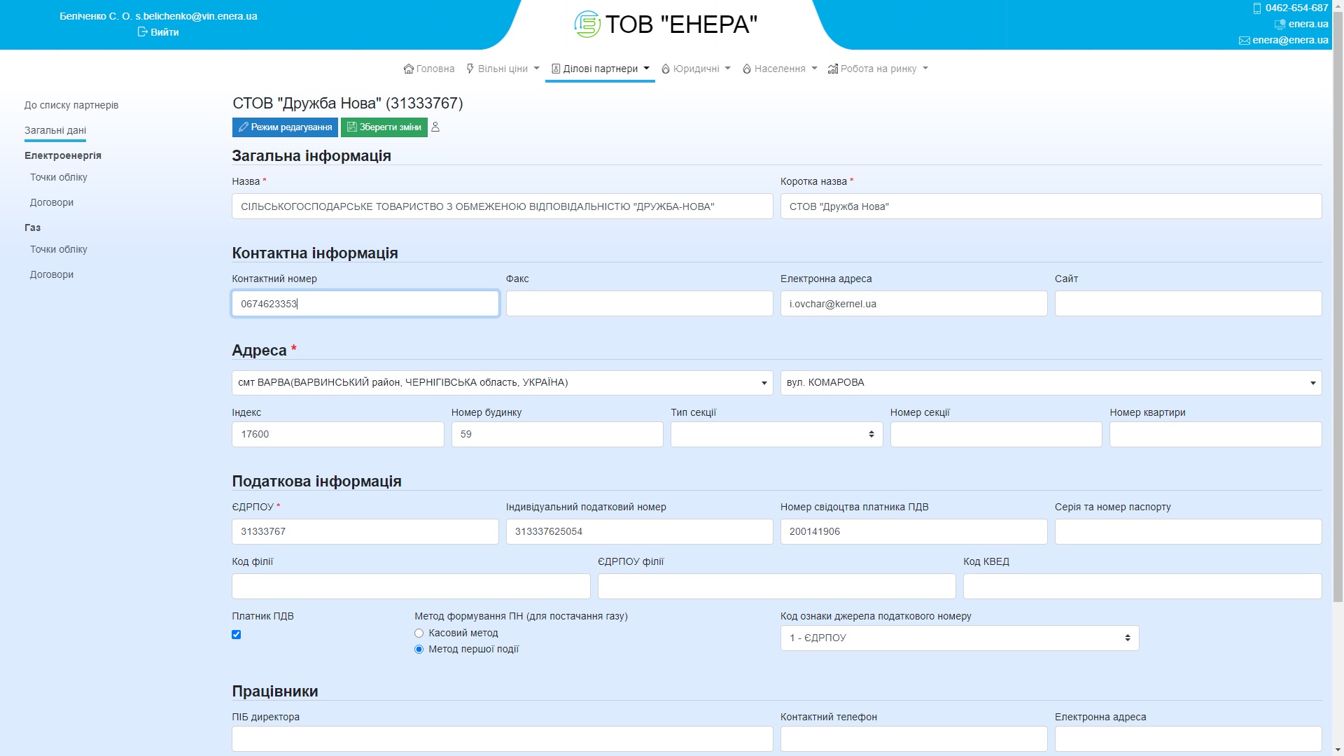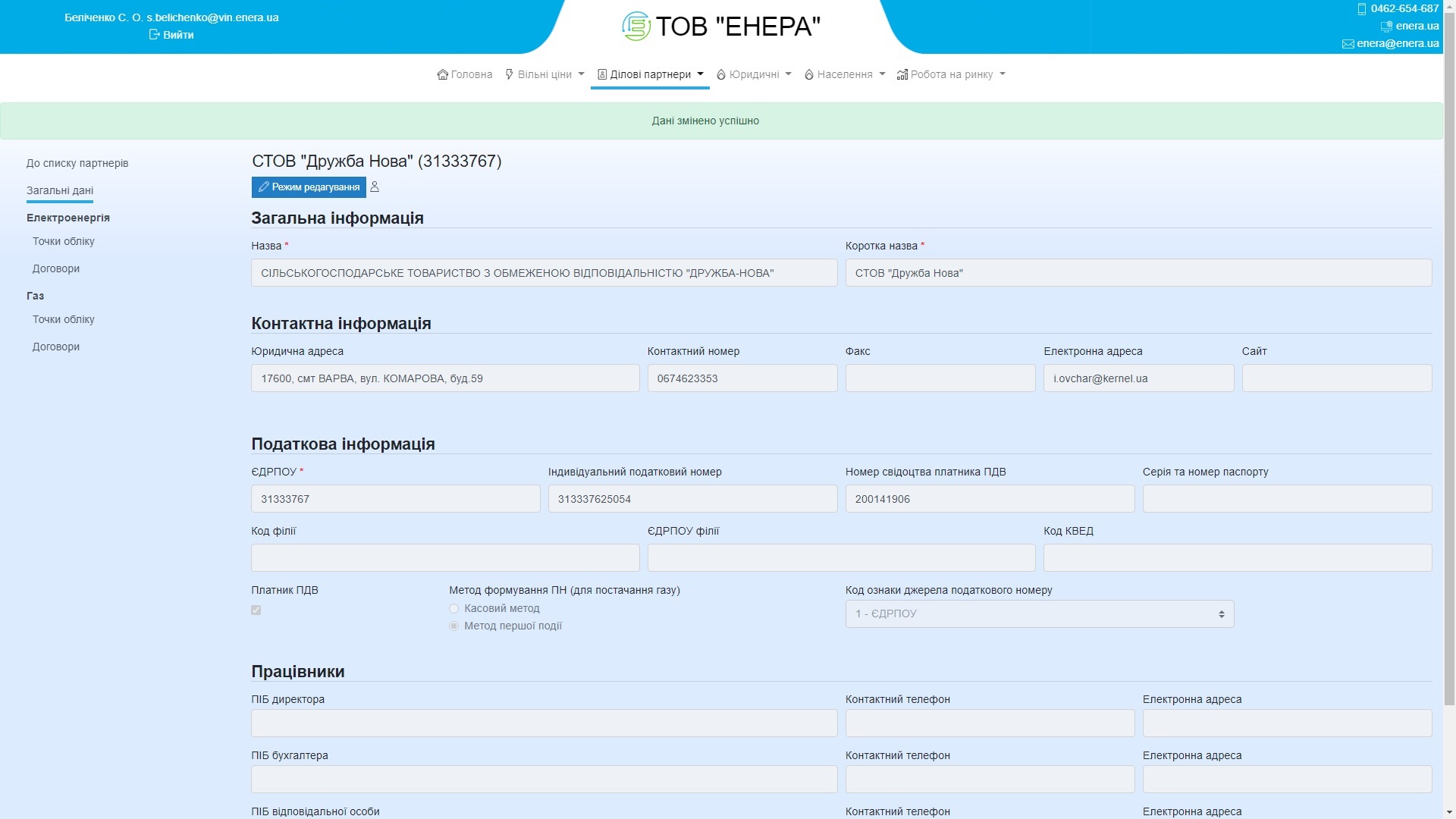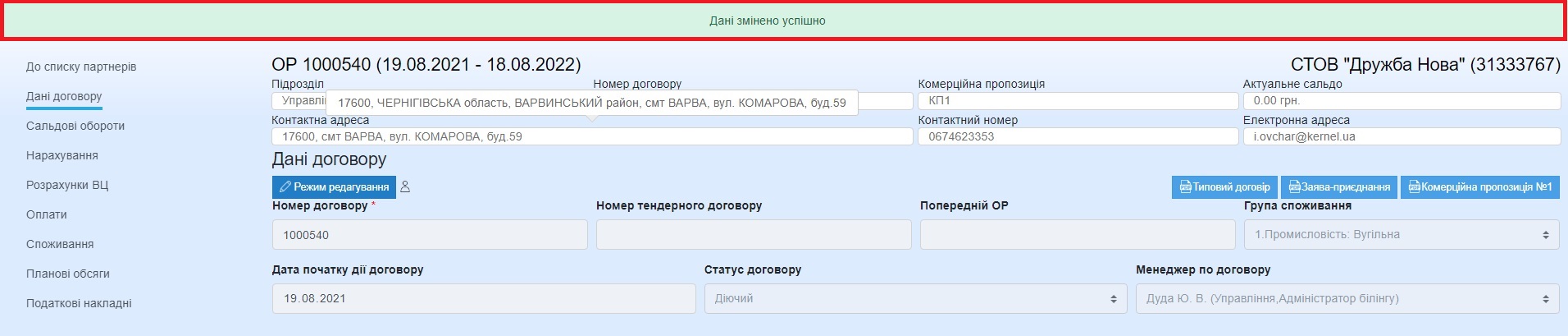 Після додавання партнера Ви будете перенаправлені на сторінку загальних даних партнера. На даній сторінці можна змінювати дані, які Ви тільки що заповнювали у вікні.