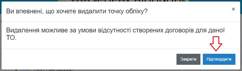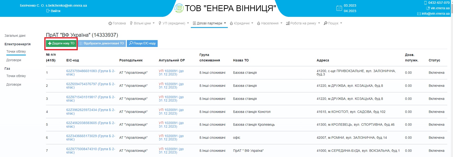 Після заповнення всієї необхідної інформації потрібно натиснути кнопку "додати", після чого Ви будете перенаправлені на сторінку з ТО, де в списку буде нова точка обліку (вона знаходиться в самому низу списка) і сповіщення про успішне додавання точки.