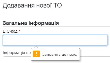Важливо! Поле "ЕІС-код" приймає тільки цифри та англійські букви, це зроблено для коректного заповнення інформації.