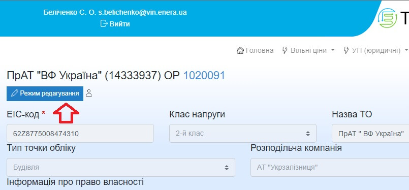 Щоб редагувати дані, потрібно натиснути кнопку "режим редагування",