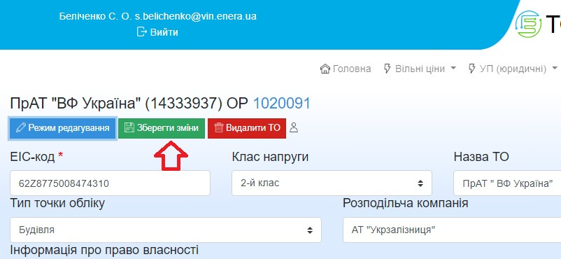 Для того, щоб змінити дані ТО, потрібно на сторінці внесення змін ТО натиснути кнопку "режим редагування",