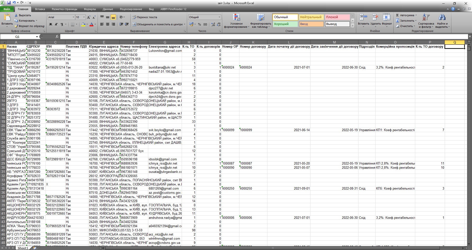 Звіт "Лише дані ділових партнерів" відображає інформацію лише про ділових партнерів. Додатково буде відображено загальну кількість ТО та договорів по кожному ДП.