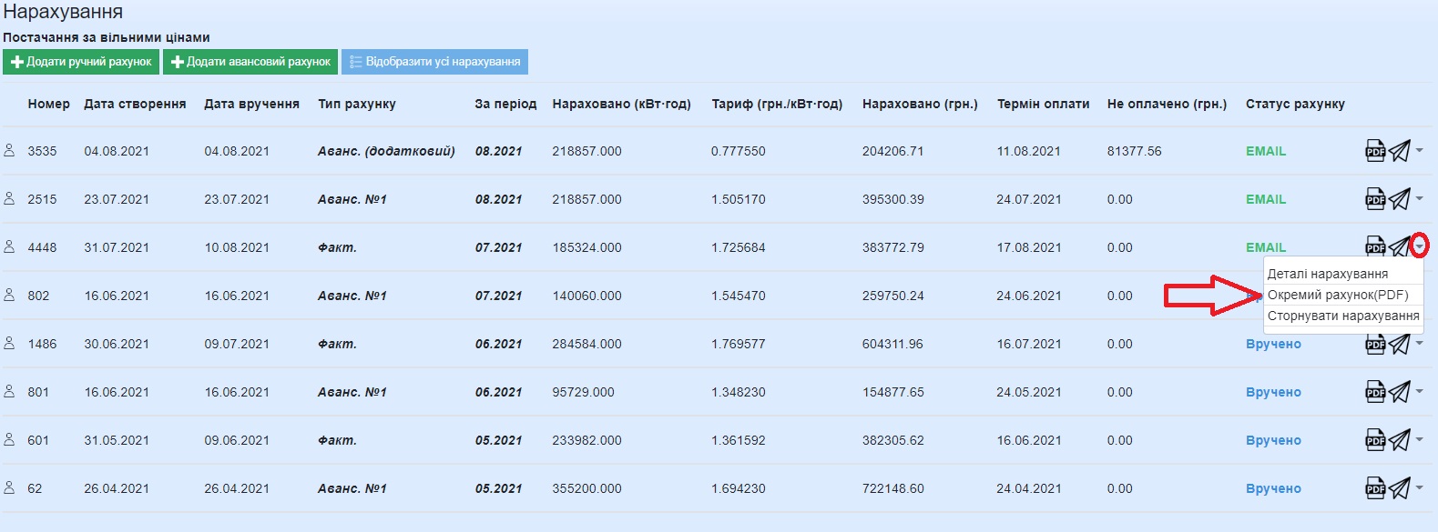 При натисканні на номер особового рахунку Ви будете перенаправлені на сторінку "оплати" того договору, номер якого Ви натиснули.