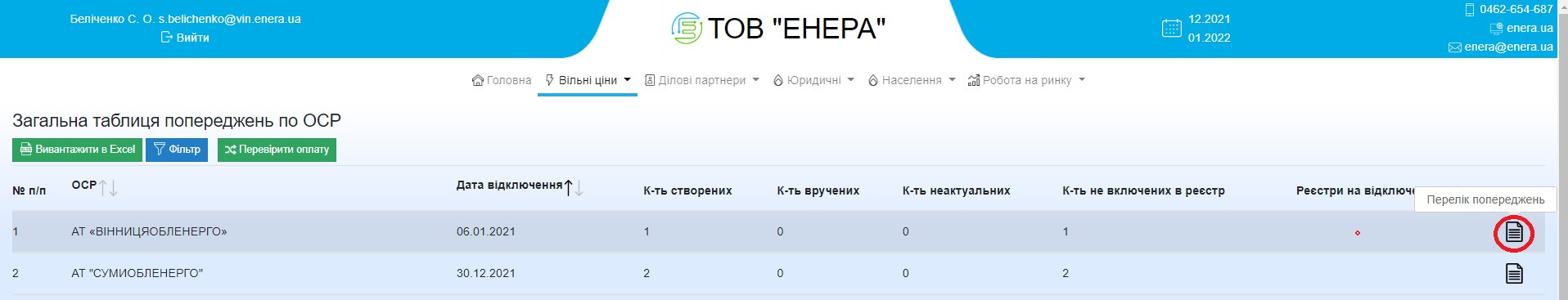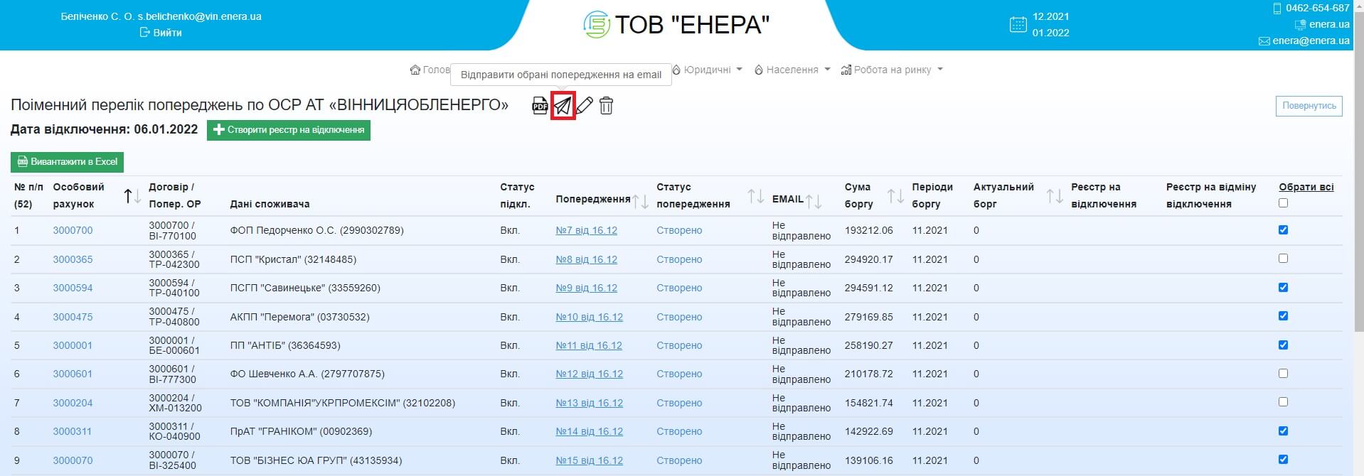 Ця кнопка з'явиться, якщо хоча б одне попередження з списку матиме статус "Оплачено", "Скасовано оператором" або "Гарантійний лист".