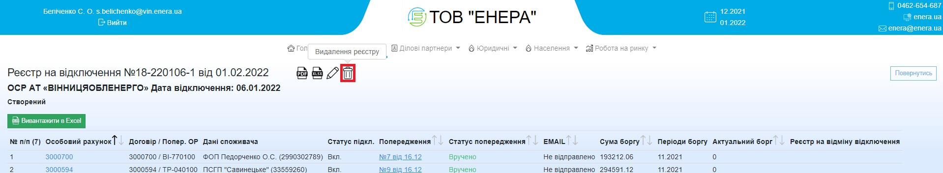 Видалити можна тільки створені реєстри на відміну відключення, які ще не були надіслані до ОСР.