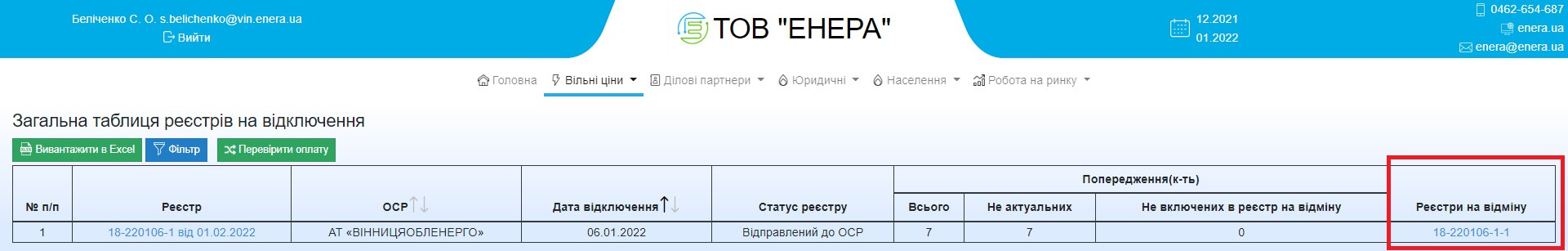 В подальшому, реєстр на відміну відключення можна буде знайти на сторінці реєстрів на відключення:
