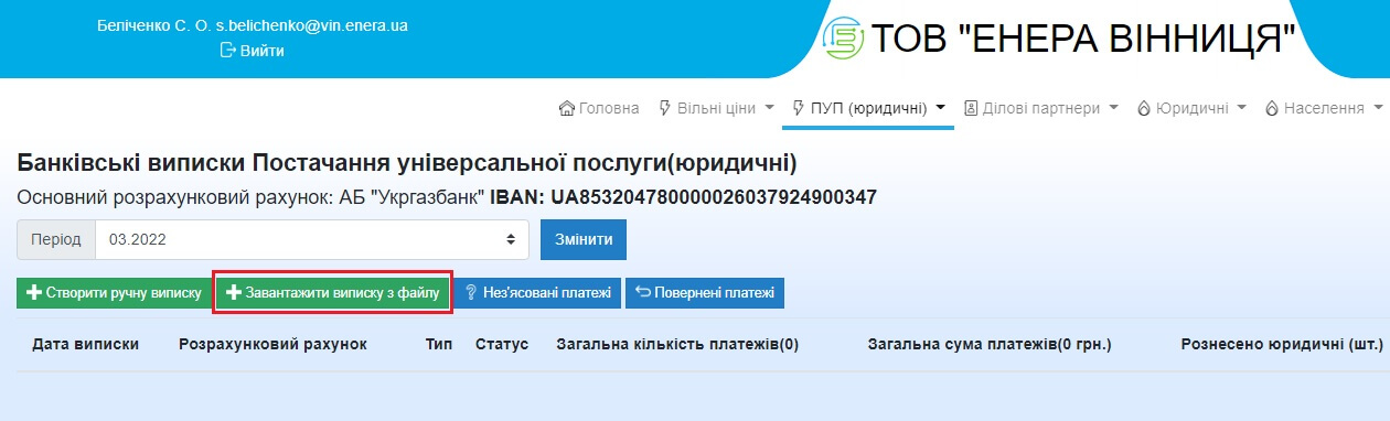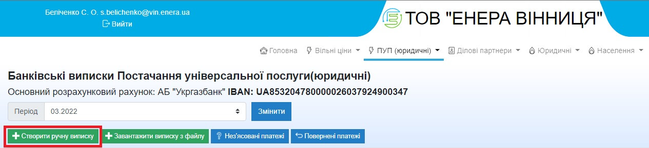 1) Зайти у підрозділ "Банківські виписки -> Основна", розділу "Вільні ціни" або "ПУП (юридичні)"