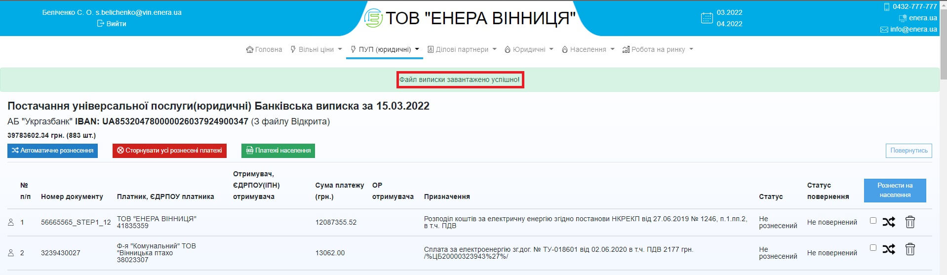 Після успішного завантаження файлу Ви будете переміщені на сторінку з завантаженою випискою.