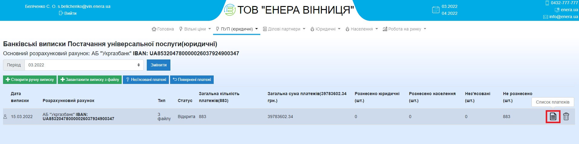 2) Знайти потрібну виписку та натиснути на кнопку "Список платежів"