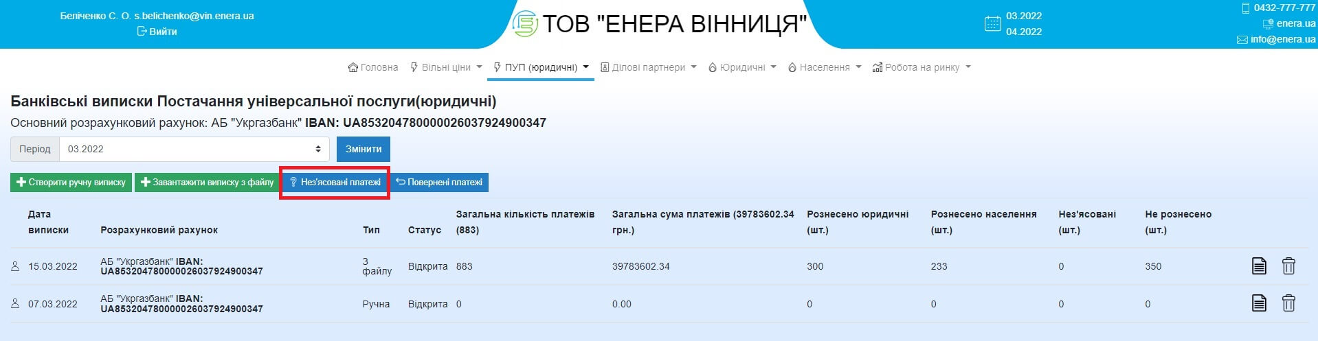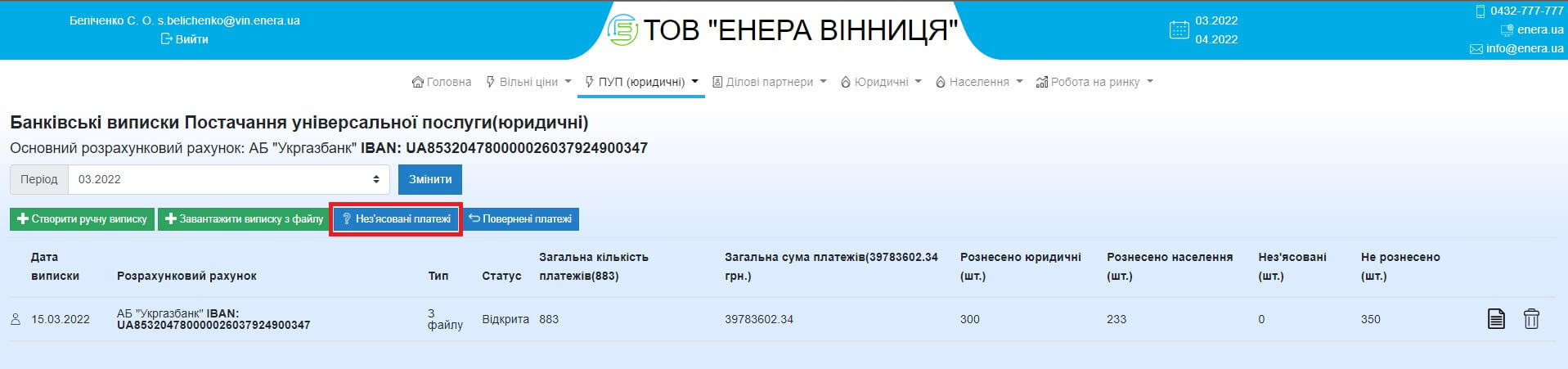 2) Натиснути на кнопку "Нез'ясовані платежі"
