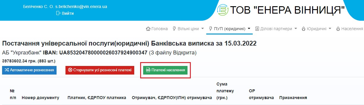 За необхідності, можна сформувати документ, в якому будуть міститись одиничні платежі населення. Для цього потрібно натиснути відповідну кнопку: