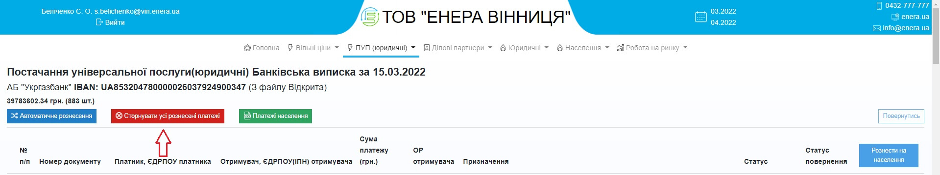 3) Натиснути на кнопку "Сторнувати усі рознесені платежі"