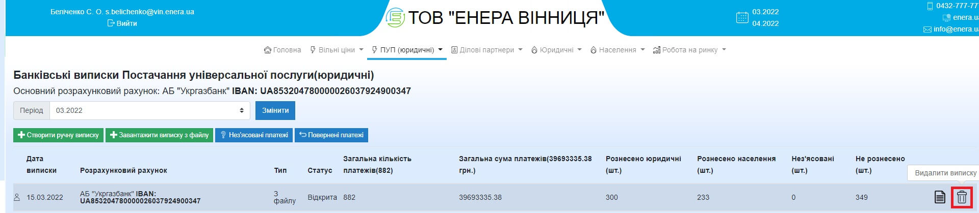 2) Знайти потрібну виписку та натиснути на кнопку "Видалити виписку"